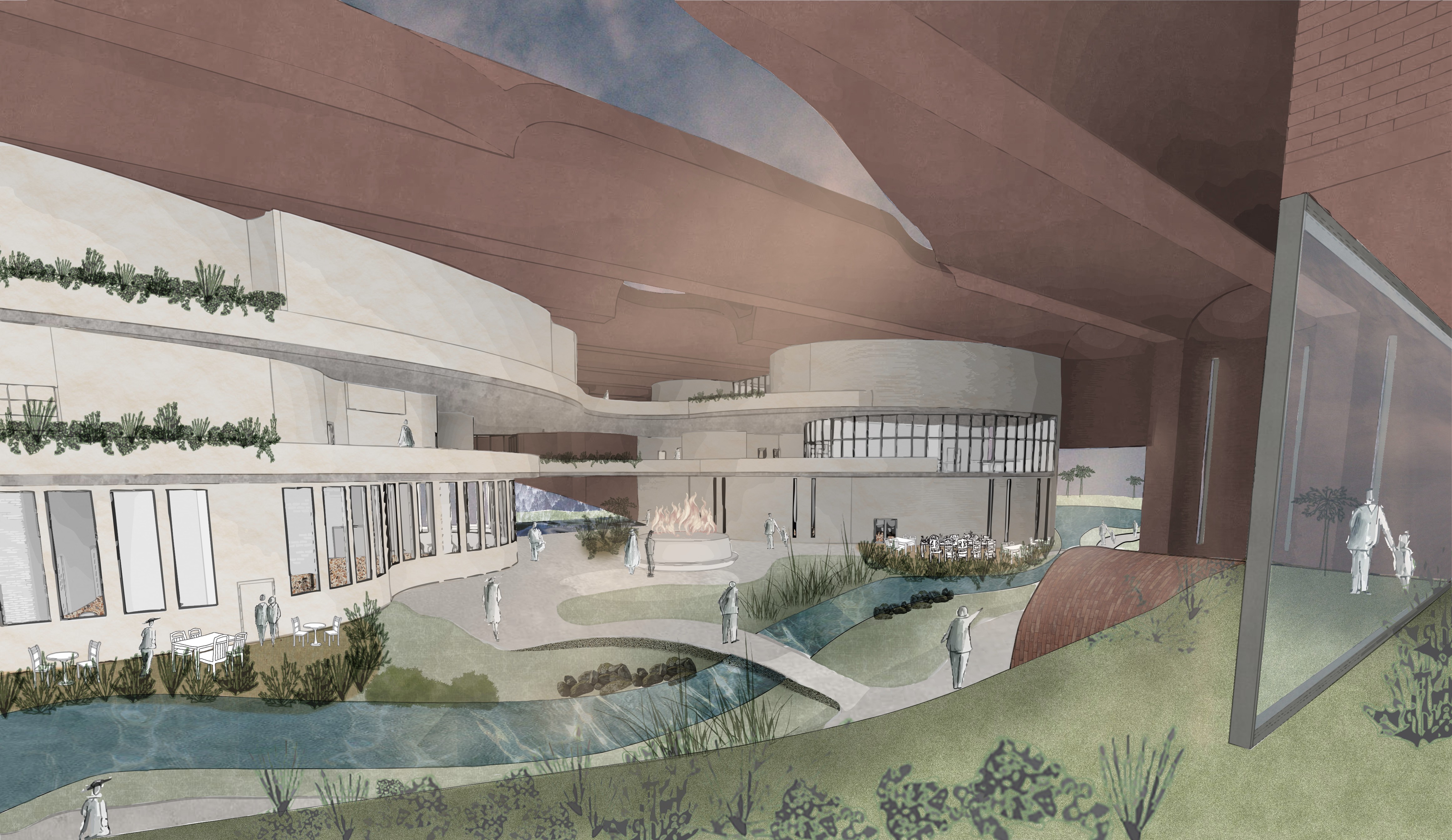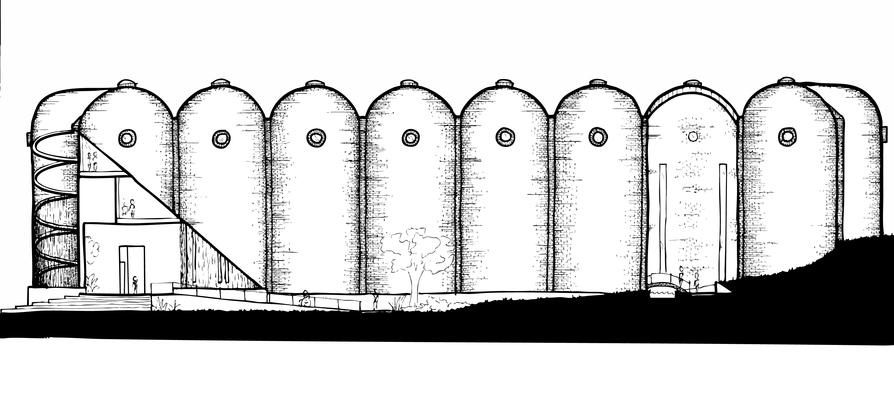 Based on a Terra Viva architecture competition prompt, which was open to professionals and students alike, this project reimagines an abandoned and unique winery in Valencia, Spain as a community center point, reinvigorated with purpose. As a group of 4 students, we completely redesigned the site, building exterior, interior, and programming to lean into the beauty of something broken, while refining the architecture into something more memorable and impactful